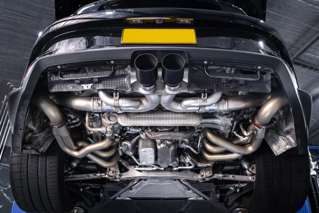 RCS offers bespoke exhaust system upgrades engineered to optimize engine output and maximize exhaust flow efficiency. Each system is designed to reduce backpressure, improve throttle response, and unlock additional horsepower — all while refining the acoustic character of your Porsche. From deep, aggressive tones to a more refined sport sound, our exhaust systems are carefully tuned to deliver a signature exhaust note that reflects your driving style, creating a truly personalized and immersive driving experience.